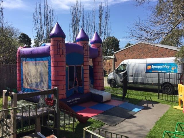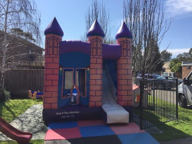 The Mini Purple Combo Jumping Castle is ideal for Home Parties, Child Care Centres and Kindergartens.